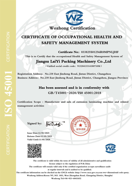 • चीन JIANGSU LAIYI PACKING MACHINERY CO.,LTD. प्रमाणपत्र